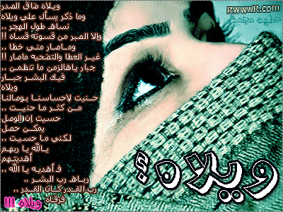 رد: موضوع للمميزين فقط " صورة وقصيدة " http://www.rwwwr.com/upload//uploads...982d87c312.gif ~{}’’ ويـلاه ضاق الصدر وما ذكر يسأل علي ويلاه نساهـ طول الهجر .. وإلا الصبر من قسوته قساه .!! ومــاصـار منـي خطا .. غيــر العطا والتضحيه ماصار !! جبــار يـاهـالـزمن مـا تنظمـن .. فيـك البشـر جبـــار ويلاه حــنيت لإحساسنــا بـوصالنـا مــن كثــر مـا حنيـــت .. حسيــت إن الوصــل يمكــن حصـل لـكني مـا حسيــت .. يــالله يـا ربهــم أهديتـهم فـ أهديـه يـا الله .. ربــاهـ رب البشـر .. رب القــدر كــان القــدر .. فرقـاه ويلاه :nabd: |