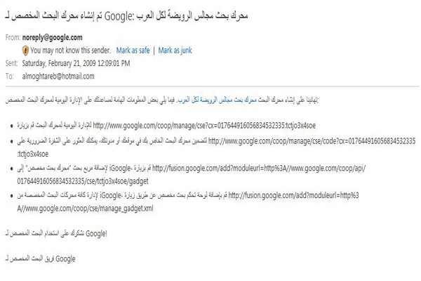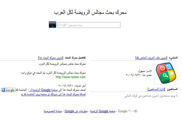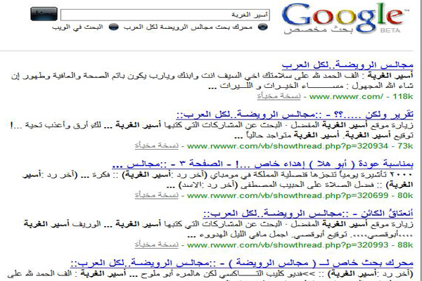 ![]() تحية طيبة ومساء سعيد على الجميع اليوم جبت لكم محرك بحث خاص فينا بهالمجالس ومن عملي المتواضع أضعه بين أيديكم لإستخدامه للبحث داخل مجالسنا الغالية أتمنى أن يجد العمل رضاكم وإستحسانكم .. طبعًا هذه صورة لعملية البحث بعد إعداد المحرك ![]() ![]() ![]() للدخول لمحرك البحث الخاص بالمجالس من هالرابط : http://www.google.com/coop/cse?cx=01...35:tctjo3x4soe ودمتـــم ســــــالمين ....!