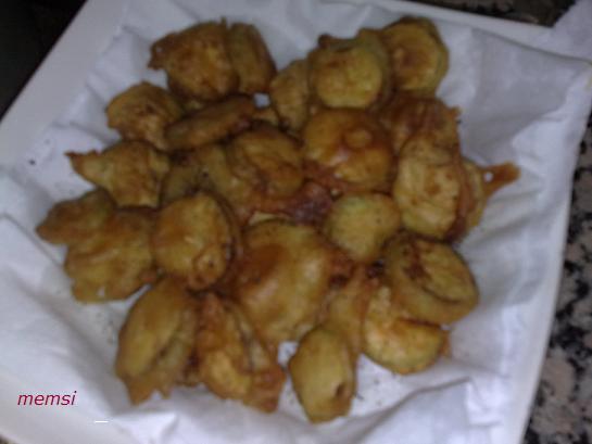 نضع شريحة شريحة من الكوسة في التغطية وبعدين على الزيت