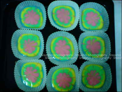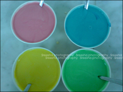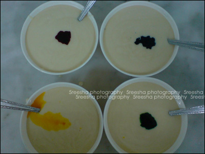 نضيف في كل قسم بعض قطرات من الألوان الموجودة