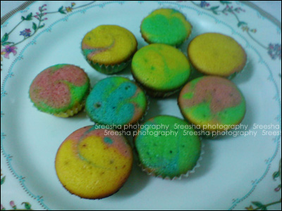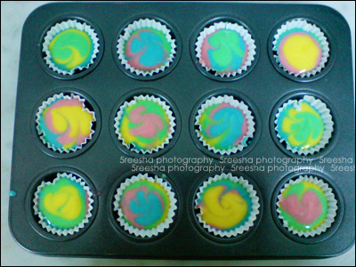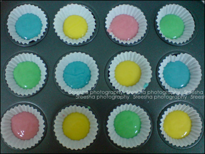 وبعدين نضع الصينية فالفرن .. ونخليها تقريبا 15 دقيقة مو اكثر .."يعتمد على حجم الكوب كيك" انا استخدمت الصغار ف ماطولت كثير فالفرن