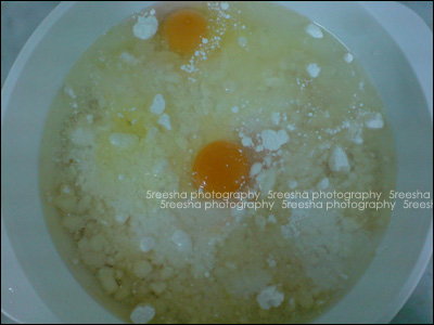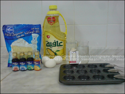 اول شي نسوي الكيكة عادي .. نضع الكيك + البيض + الماء + الزيت