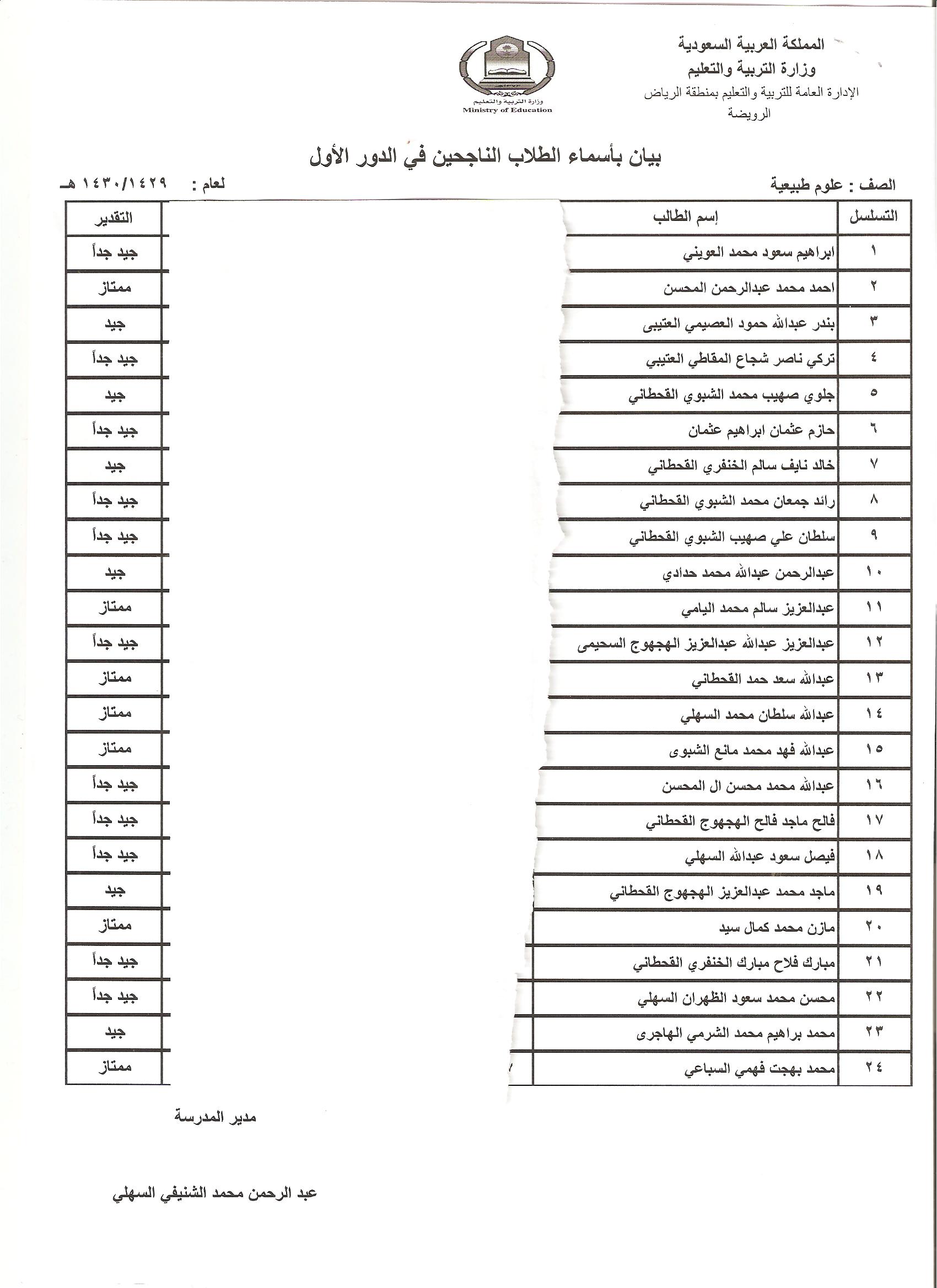 | نتائج ثالث ثانوي شرعي ثانوية الرويضة | abadiii | أخبار الرويضة | 7 | 05-07-2009 03:06 PM |