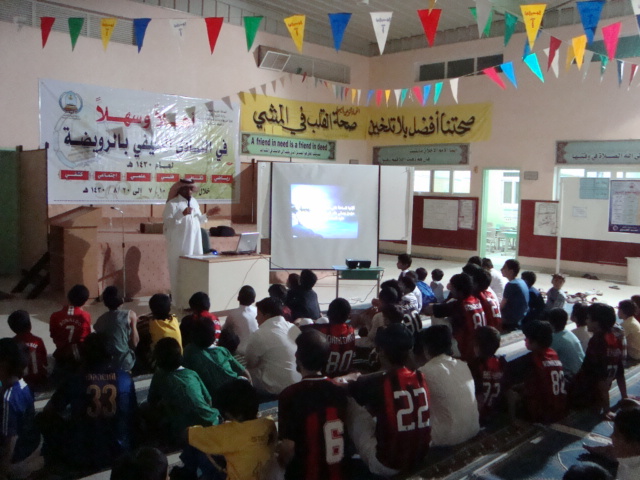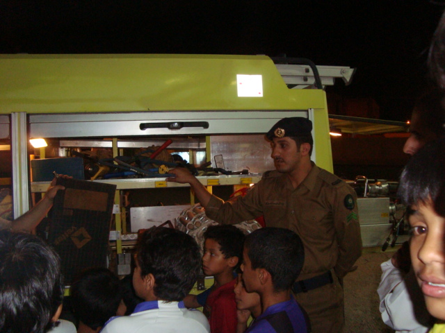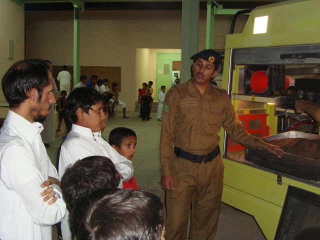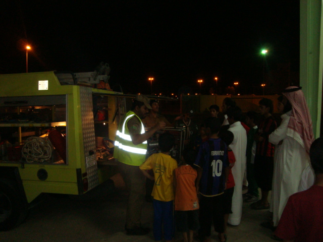 | أعضاء مجالسنا الكِرام وكما عودناكم في نهاية كل أسبوع ننقل لكم بالصور فعاليات الأسبوع لنادي الرويضة الصيفي حيث كان في هذا الأسبوع من خطة النشاط الكشفي زيارة فرقة الإنقاذ بمركز الدفاع المدني بالرويضة لمقر النادي والشرح للطلاب عن طبيعة عمل الإنقاذي وطريقة إستخدام الأجهزة والمواد الموجودة في سيارة الإنقاذ * * * * * * * * * * * * * * عرض بروجكتر للنشاط الثقافي وأسئلة عن الموضوع في نهاية العرض * السحب على أسئلة النشاط الثقافي *