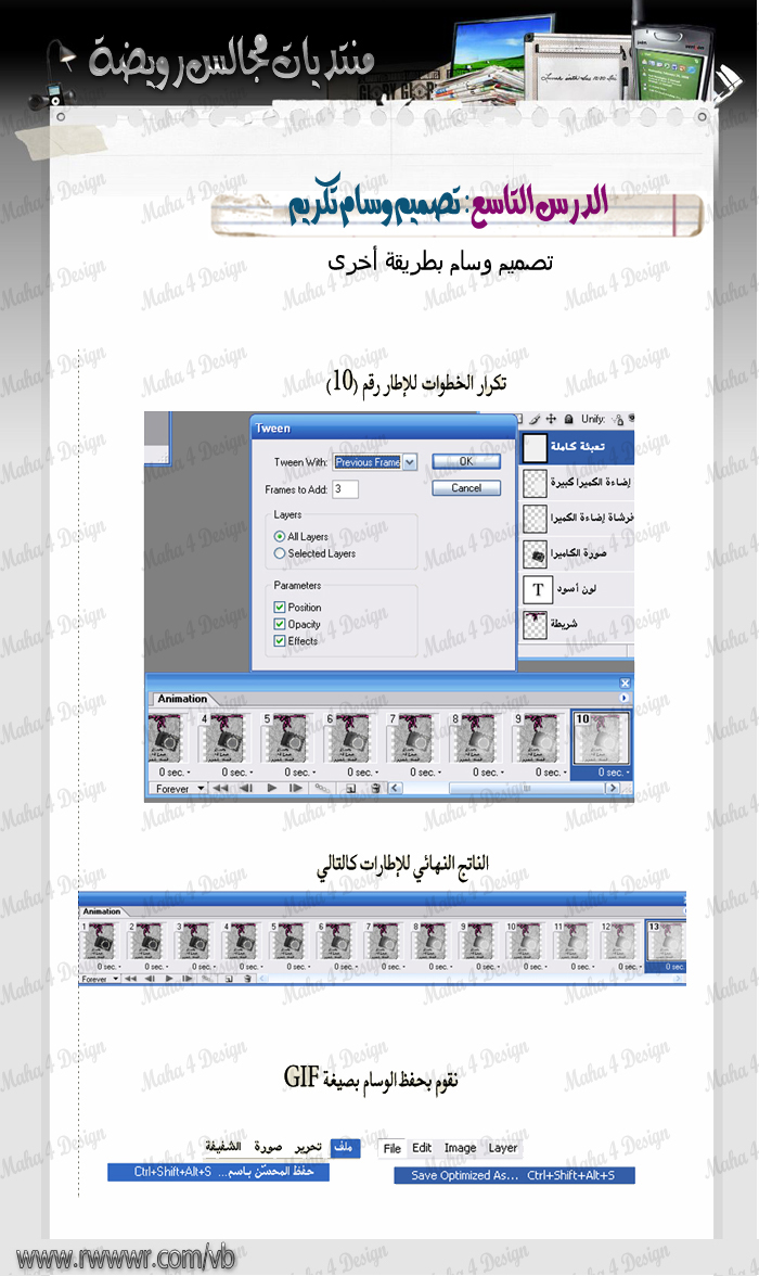 | الدرس الثالث: تصميم توقيع متحرك | {مها للتصميم} | قسـم الــدروس | 23 | 21-06-2011 04:56 AM |