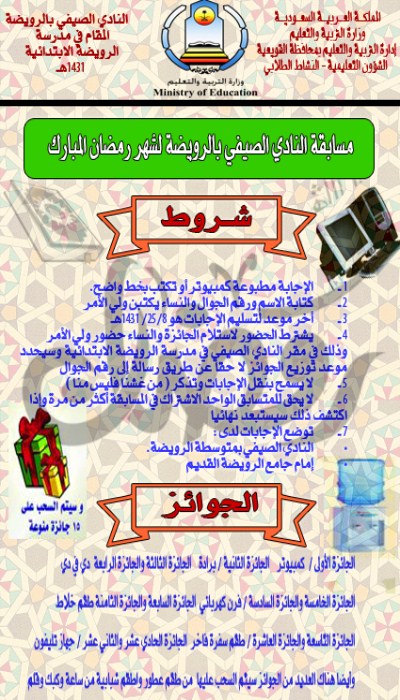 اليكم مسابقة النادي الصيفي بالرويضة لشهر رمضان المبارك