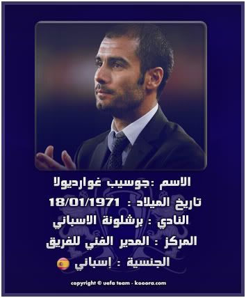 ( من مواليد 18 يناير من عام 1971 , في بلدية سانت بيدور , والتابعة لمقاطعة برشلونة ) , كـ لاعب كان غوارديولا من افضل لاعبي برشلونة عبر تاريخها وأمضى اغلب حياته الكروية كلاعب في النادي الكاتلوني , وفي نهاية مسيرته كـ لاعب انضم لعدة اندية وهي ( بريشيا , روما بايطاليا , الاهلي القطري , دورادوس المكسيكي ) .. مسيرة غوارديولا التدريبية قصيرة جداً نظراً لصغر عمره ,, وبدأها بتعيينه مدرب لبرشلونة B في 21 يونيو 2007. , وبعد اداؤه المميز مع الفريق تم ترشيحه من خوان لابورتا رئيس النادي ليصبح مدرب الفريق الاول وتم اعلان ذلك قبل نهاية موسم 2007/2008 ليكون خليفة المدرب الهولندي فرانك ريكارد .. حقق الانجاز التاريخي بتحقيقه لقب الثلاثية و لم يتوقف عن ذلك فقد حقق بعد ذلك لقب كأس السوبر الاسباني و بعدها كأس السوبر الاوروبي ومن ثم اضاف كأس العالم للاندية التي اقيمت في ابو ظبي ليحقق بذلك انجازاّ مميزاّ بتتويجه بستة القاب في اول موسم له في قيادة برشلونة ، اذاّ حتى الان هو يمتلك سجلاّ مميزاّ ونتائجهة رائعة في مشواره القصير في عالم التدريب ، صحيح انه مرب شاب لاكنه يثبت يوماّ بعد يوم انه قادر على مقارعة كبار مدربي اوروبا والعالم . 8 القاب حتى الان في جعبة المدرب بيب غوارديولا مابين محلية واوروبية وقد حقق هذا السجل منذ توليه قيادة تدريب الفريق في موسم 2008/2009 اي في غضون فترة ليست طويلة ومن يدري ربما يواصل حصد الالقاب في قادم المواسم وبالتأكيد لديه القدرة على تحقيق ذلك