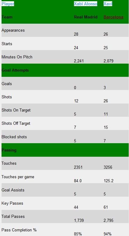 حتى ذي السنه .. اسوء مستويات مدريد بصناعة اللعب كانت بغياب ألونسو ..  نفس الكلام تشافي.. ودك مثل الصورة اللى فوق .. تحط عمره الكروي إلى مالا نهاية .. وتقول لا يوقف ..
