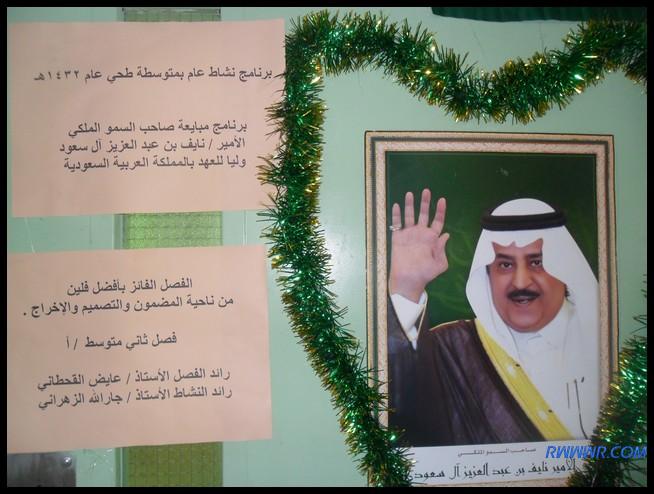 السلام عليكم ورحمة الله وبركاته نزف اليكم تميز فعاليات انشطة مدرسة / متوسطة طحي خلال منتصف الفصل الدراسي الاول للعام 1432 - 1433هـ وقد اقامت المدرسة العديد من الانشطة منها مركزية بتعاميم صادرة من ادارة التربية والتعليم بالقويعية قسم النشاط الطلابي ومنها تنفيذا لخطة رائد النشاط العامة أ/ جار الله الزهراني وخطة مشرفي الانشطة مع مسانده فعالة من المرشد الطلابي أ/ بـدر عيد العصيمي وإليكم تقرير بالصور مع بعض التعليقات عليها هنا تنفيذ برنامج تخصيص الحصة الاولى بعد الطابور الصباحي للحديث عن سيرة الفقيد رحمه الله سلطان بن عبد العزيز وبداية القرآن الكريم ثم عن سيرته ![]() ![]() احمد العمري مدير المدرسة ننقلكم الى حفل مصغر في أول يوم بعد اجازة الحج واقيم بالفصول وجائزة لأفضل طبق للعيد ![]() ![]() ![]() ![]() ![]() ![]() ثم ننقل لكم برنامج لمبايعة الامير نايف وليا للعهد وهنا حرصنا على تجنب لاعمال الجاهزة من الخطاط وكانت آلية البرنامج تركز على اتاحة الفرصة للطلاب والعمل بأنفسهم وضهور ابداعاتهم ![]() ![]() ![]() ![]() مسابقة بين الفصول بحضور رواد الفصول وبذل الجهد مع طلابهم ضمن نفس البرنامج ![]() ![]()